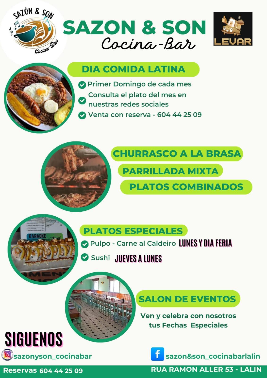 En Sazon & Son, nos especializamos en ofrecer una experiencia gastronómica y de entretenimiento vibrante que se destaca por su sabor y calidad. Desde nuestra fundación en 2024, hemos construido un lugar donde la comida, la música y la celebración se fusionan para crear momentos memorables. Te presentamos nuestros servicios, diseñados para satisfacer todas tus necesidades y brindarte una experiencia única.